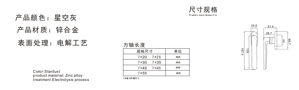 43高 直柄方轴执手