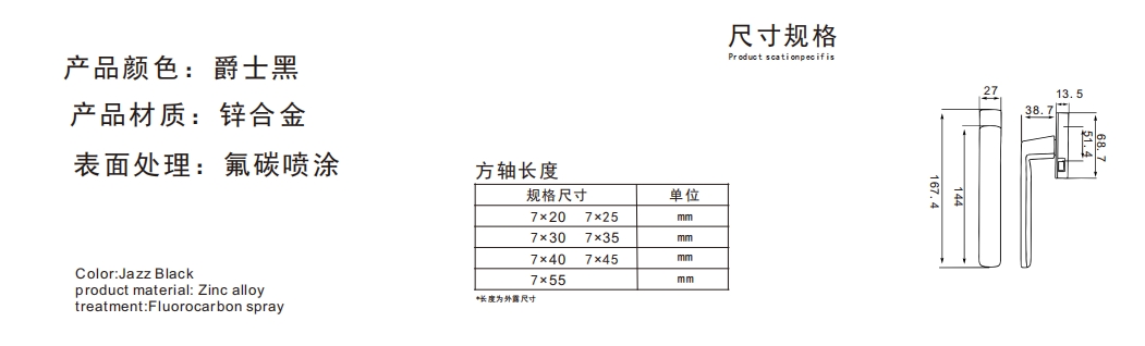 矮直柄方轴执手