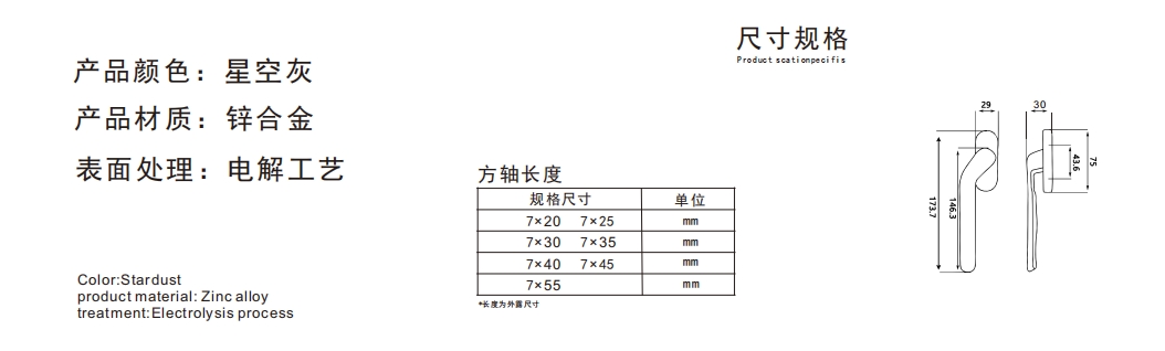 矮直柄方轴执手