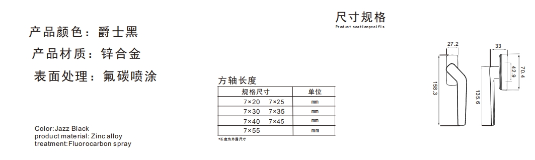 矮直柄方轴执手